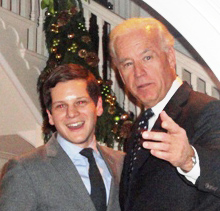 And now we're a bit closer: the picture at the right shows Vice President Joe Biden with Graham Moore, author of the new pastiche The Sherlockian, at a reception this month at the Bidens' residence on Observatory Circle. Moore's mother is Susan Sher, chief of staff for President Obama's wife Michelle. You can read all about it in a story at the website FishbowlDC. Published this month, The Sherlockian centers around two mysteries: one set in 1900, when Conan Doyle decides to do his own detecting, and the other in 2010, when Harold White, newly made a member of The Baker Street Irregulars, investigates the murder of a Sherlockian who has announced that he has discovered Conan Doyle's missing diary from the last three months of 1900. It's an interesting story, with some nice surprises, and you can read more about the book (and other things) at Graham Moore's website.