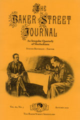 Nor will I attempt to report on them, happily leaving that work to those who will have detailed reports in the spring issue of The Baker Street Journal, which is a quarterly journal published five times a year by the Baker Street Irregulars (it is an irregular society, and the fifth issue is a Christmas Annual). You can subscribe to the BSJ at the website, which also offers information on many other BSI publications.