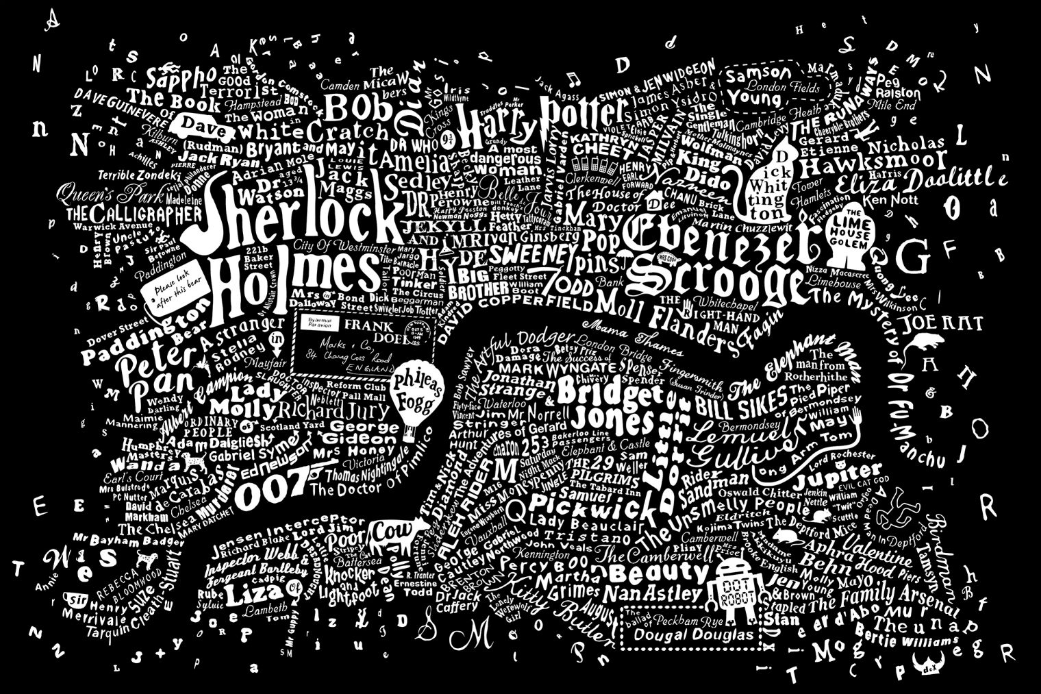 A large scale map, I presume? London graphic designer Dex, in collaboration with interior designer Anna Burles, has created what may be the ultimate Wordle: a very clever Literary Map of London. It's both a snapshot of the city's literary history and a brilliantly executed graphic, with Holmes and Watson given proper emphasis and pride of place. In fact, the artist took pains to plot all the literary legends in the corners of the city they most liked to roam or chose to call home. You can view a larger version of the map here, and you can buy your own silk screened, signed and numbered copy here and here.